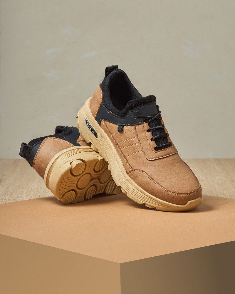 تصميم الـ Easy Wear: انسى تعب الرباط! الحذاء مزود بـ "استك" شيك جداً على هيئة رباط، مع بطانة "ليكرا" مرنة، عشان تلبسه وتخلعه في ثانية، وكمان يريح "وش القدم" تماماً.